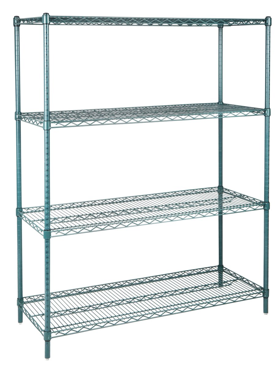 Стеллаж серии Zinc Plating underneath with Green Anti-bacterial Epoxy Coating рекомендуется для использования в сухих помещениях.